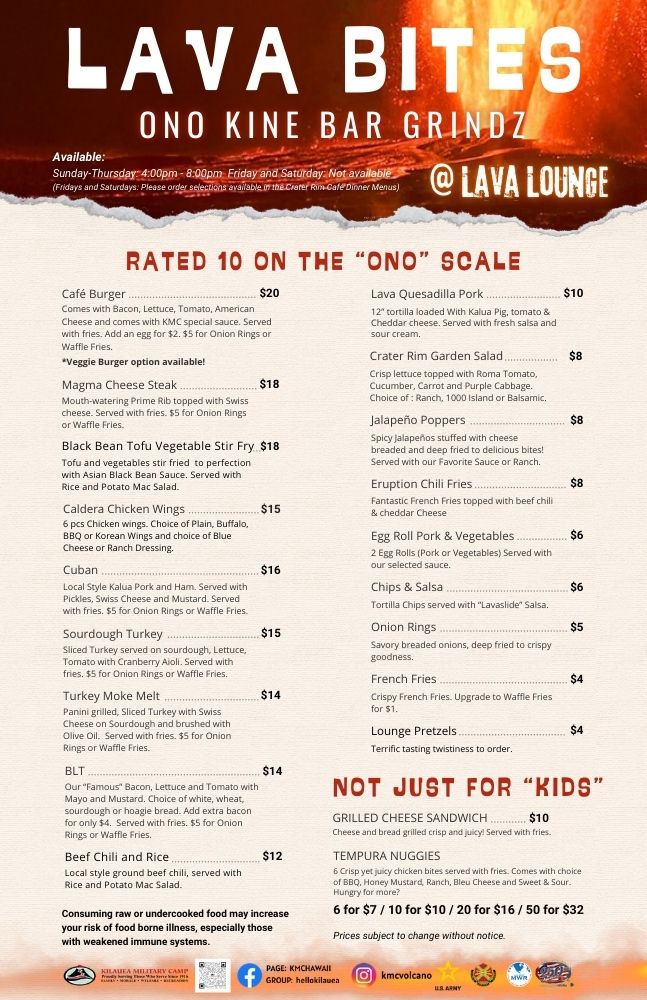 Click or Tap the button for the LAVA BITES menu.